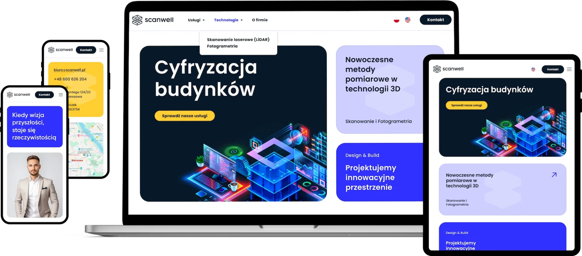 Dla Scanwell stworzyłam kompletny projekt graficzny nowej strony internetowej, który odzwierciedla innowacyjny charakter marki. Postawiłam na minimalistyczny układ, czytelną typografię i kontrastowe akcenty kolorystyczne, budujące dynamikę oraz podkreślające precyzję działań firmy. Całość została zaprojektowana tak, aby była nie tylko estetyczna, ale też funkcjonalna i intuicyjna w odbiorze – wspierając wizerunek Scanwell jako nowoczesnego i profesjonalnego partnera w branży technologicznej.